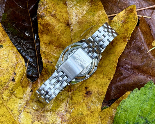 Seiko 5 Blue Dial “Ghost Logo” Automatic 21 Jewels Stainless Steel Wristwatch ref. SNK357K1