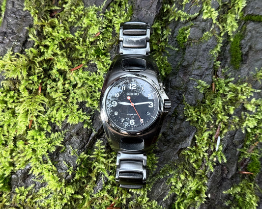 Seiko Black Dial Kinetic Black PVD/Stainless Steel Back Wristwatch ref. 5M42-0E70