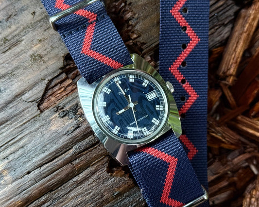 Timex Rare Blue “Moire” Dial circa 1975 Hand Wound Wristwatch ref. 23653 02575